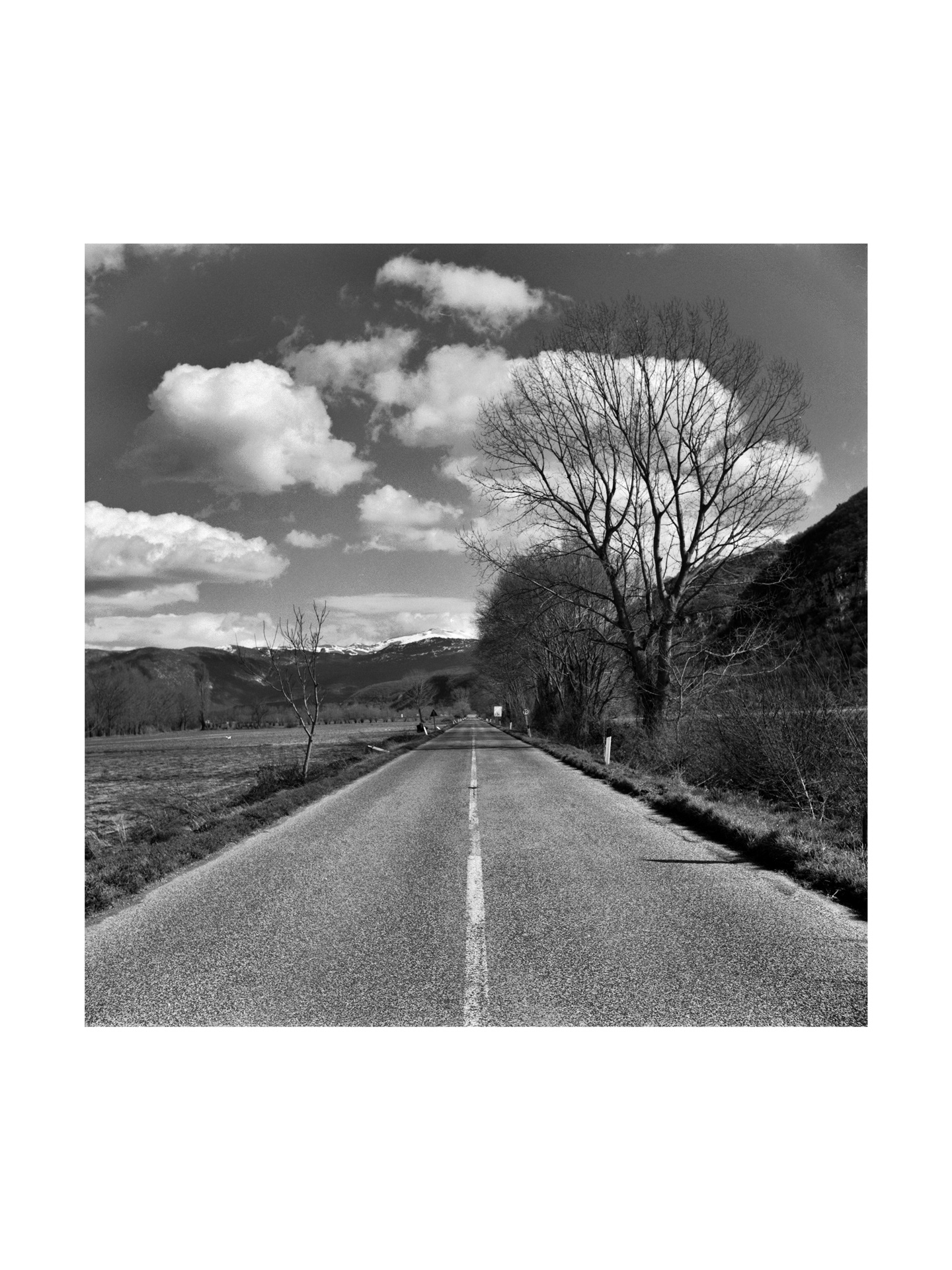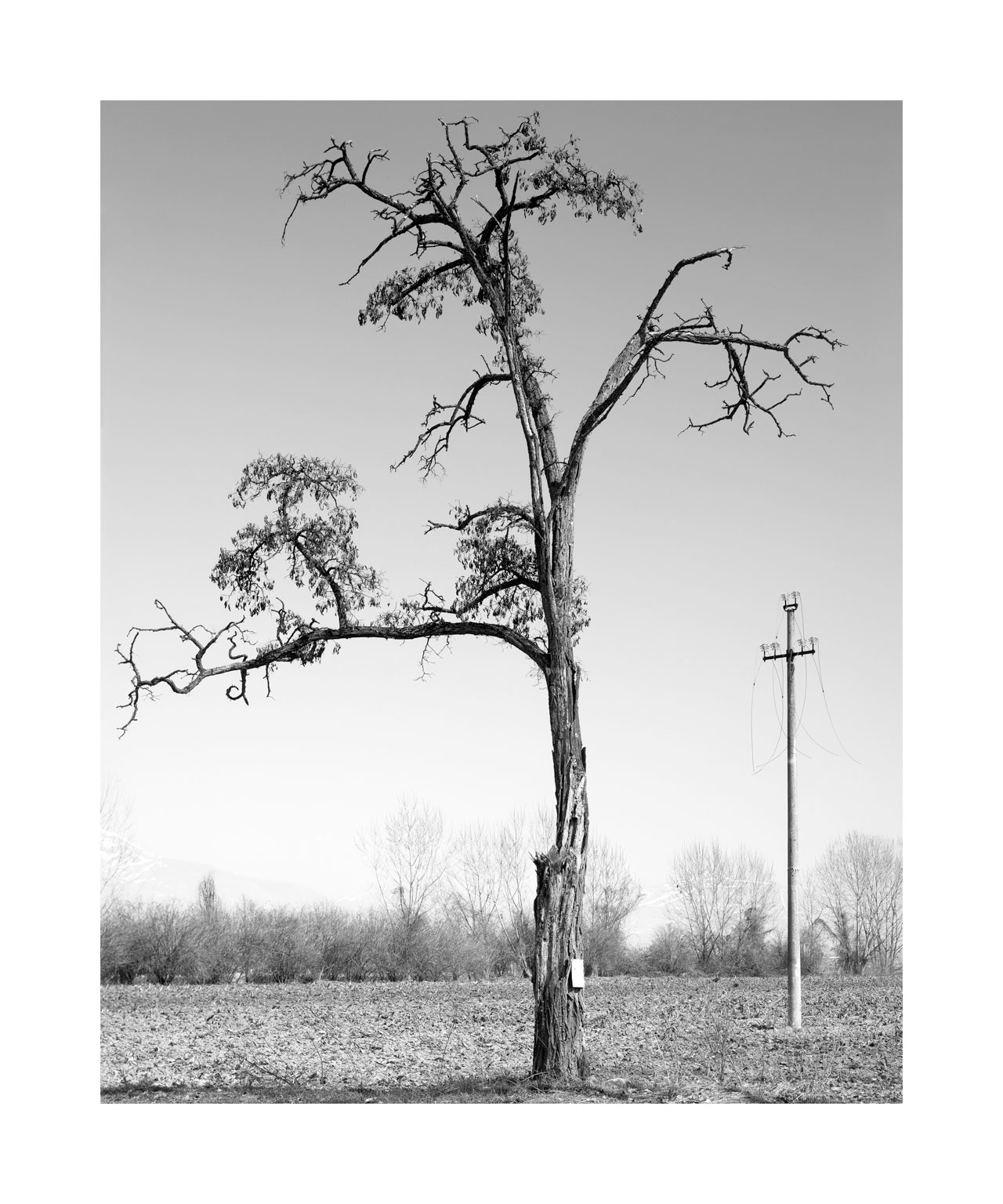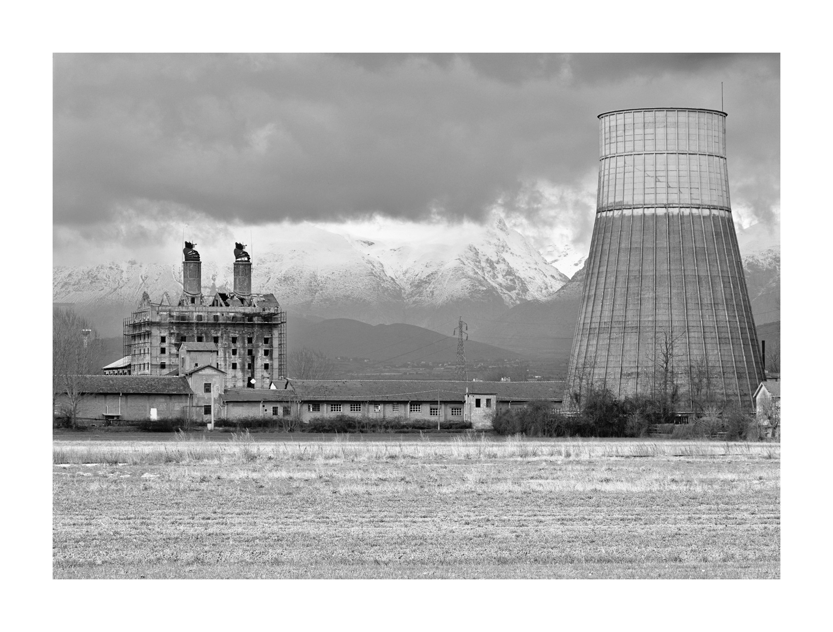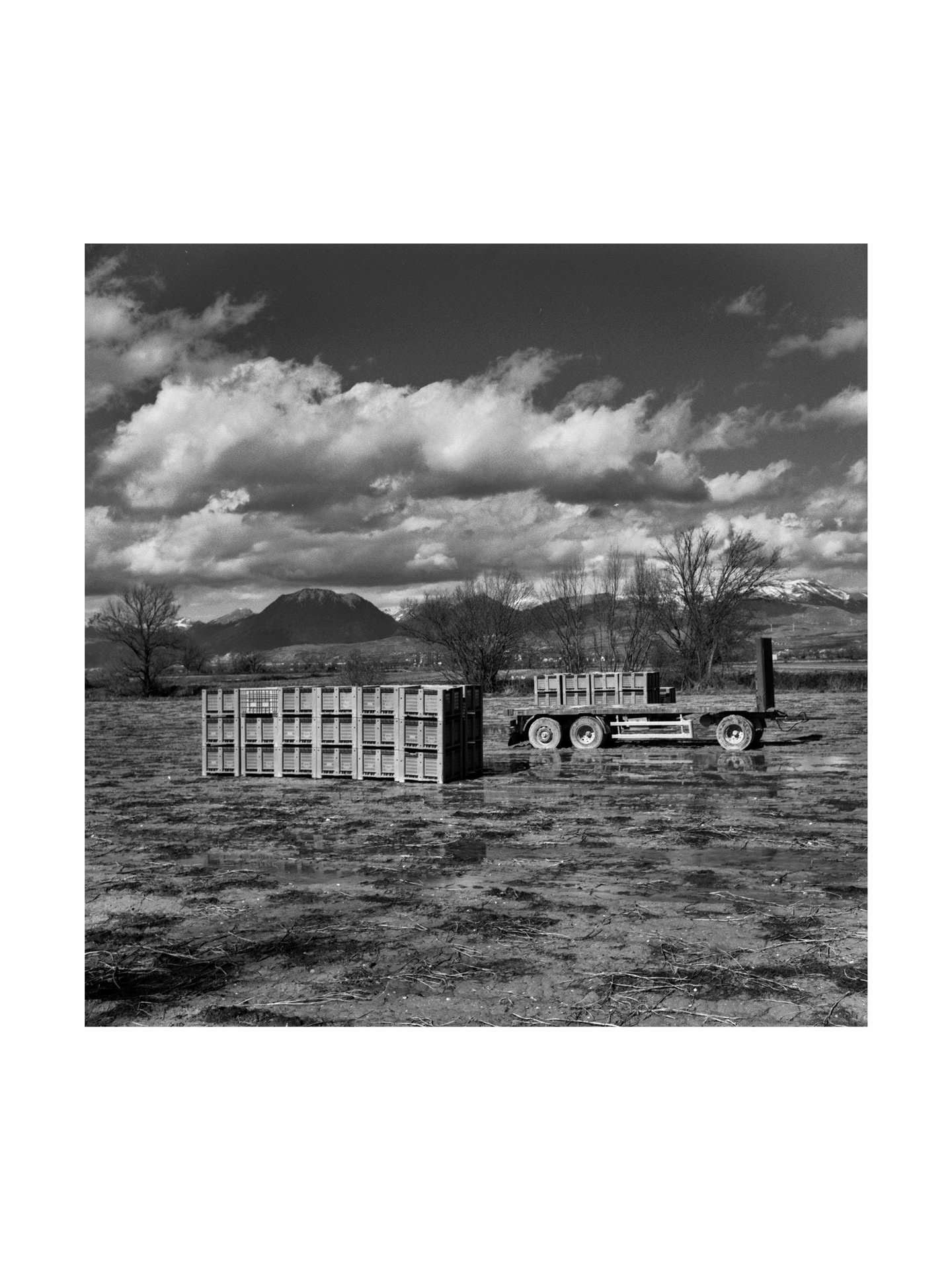 Fucino lake, the third lake in Italy by extension, was partially dried up in Roman times, through a colossal hydraulic work known as Emissary of Claudius or Claudio Cunicoli, whose well-preserved ruins are a tourist attraction. Then the emissary was obstructed and Fucino Lake reconquered his space. Nestled in the mountains, it gave a mild climate to the whole area of Marsica and was a magnificent landscape, so much so that it became a fixed stop for northern European travelers who between the 18th and 18th made the Grand Tour in Italy; there remains testimonies of so much beauty in the numerous paintings and stories made at the time, by these cultured travelers. In the mid-nineteenth century Prince Torlonia made a new emissary and in 1871 the last drop of water of the lake merged into the Liri river, forever changing the climate, the landscape and the way of life of the Marsicans. At the time the new arable land brought economic well-being, but seen with the eyes and sensitivity of today, the drying up was an authentic crime against nature. In the immense plain of Fucino I look for residues of the aesthetic dignity that the place had in the past, finding traces in the hypnotic geometries of the cultivated fields.