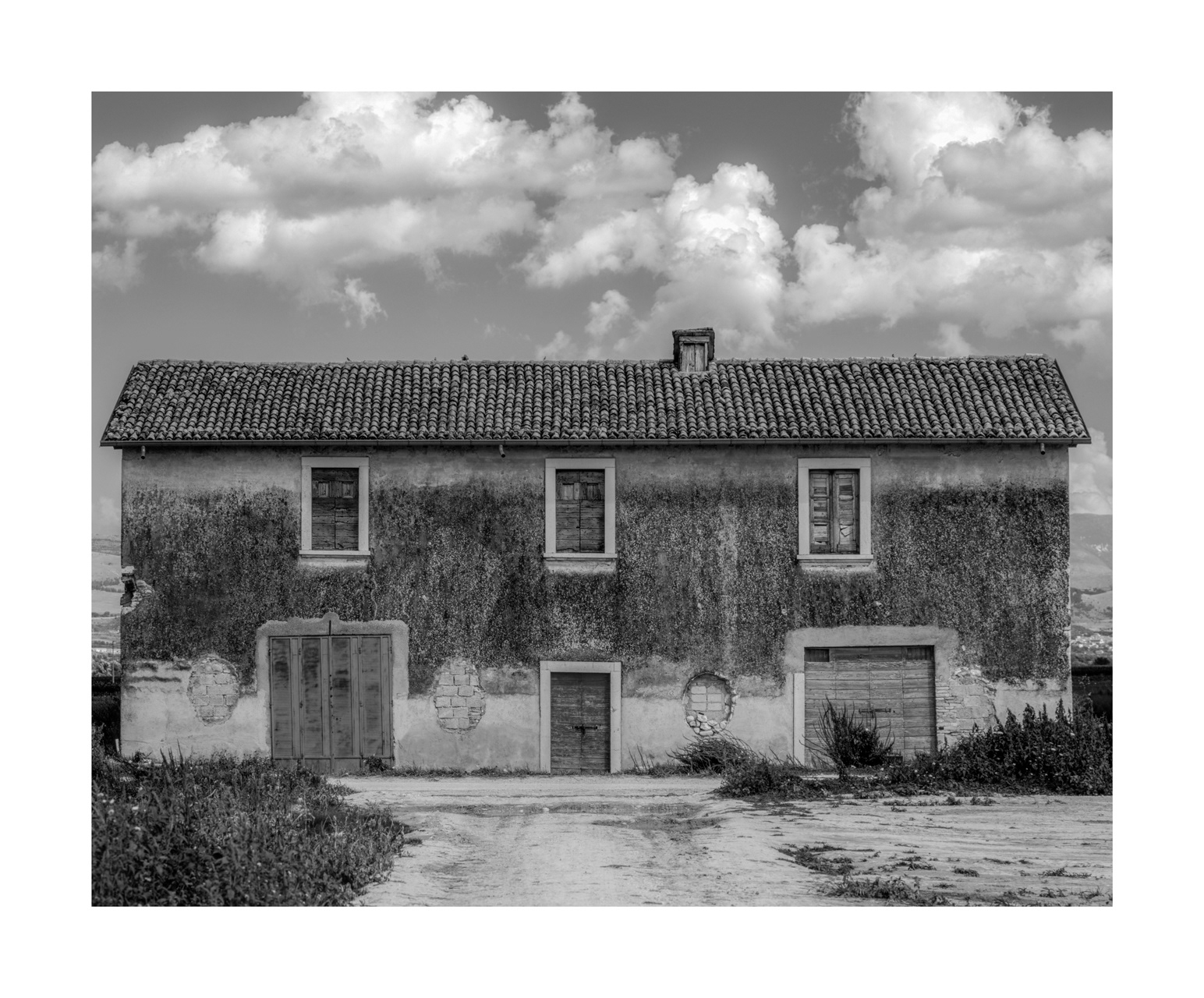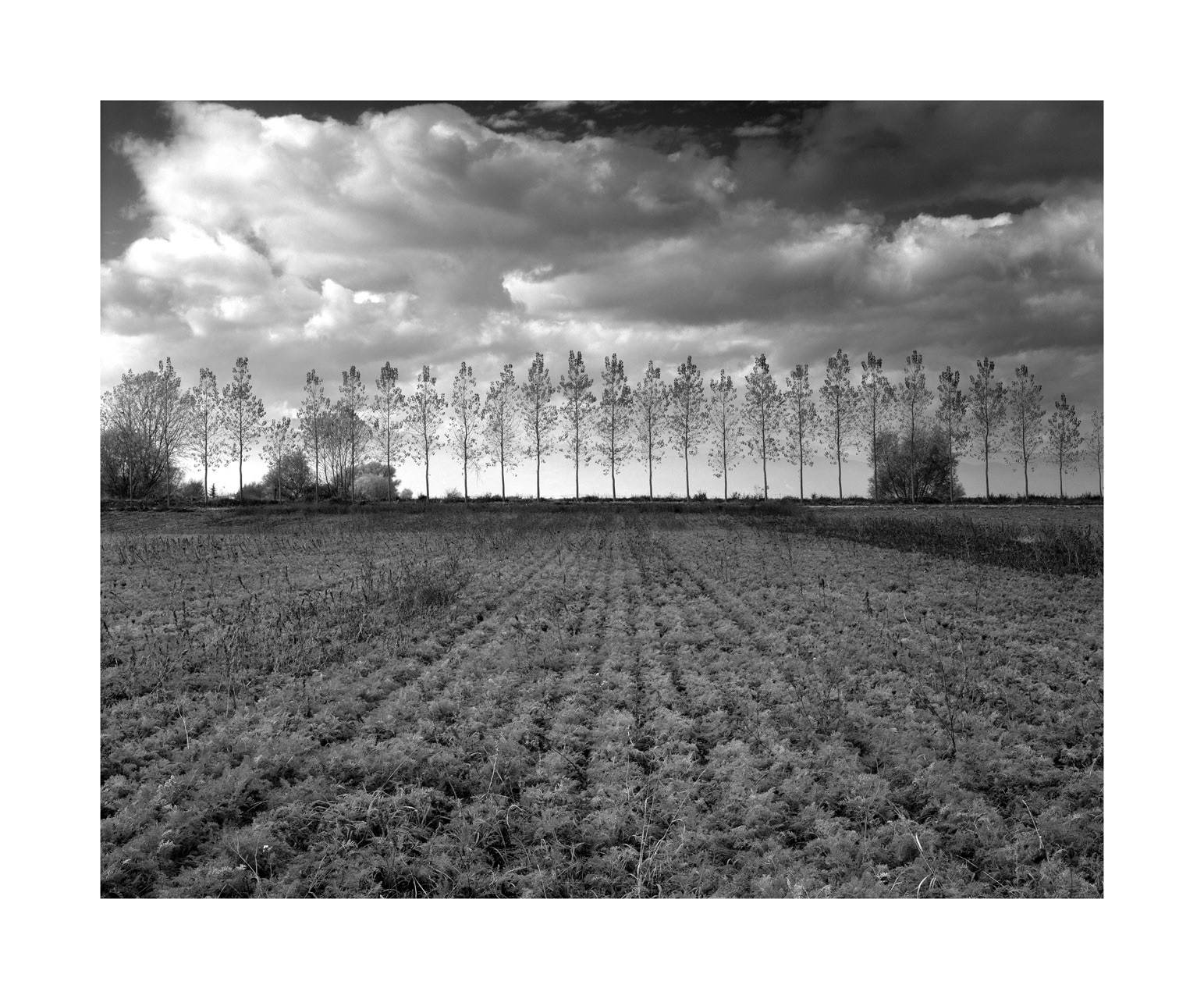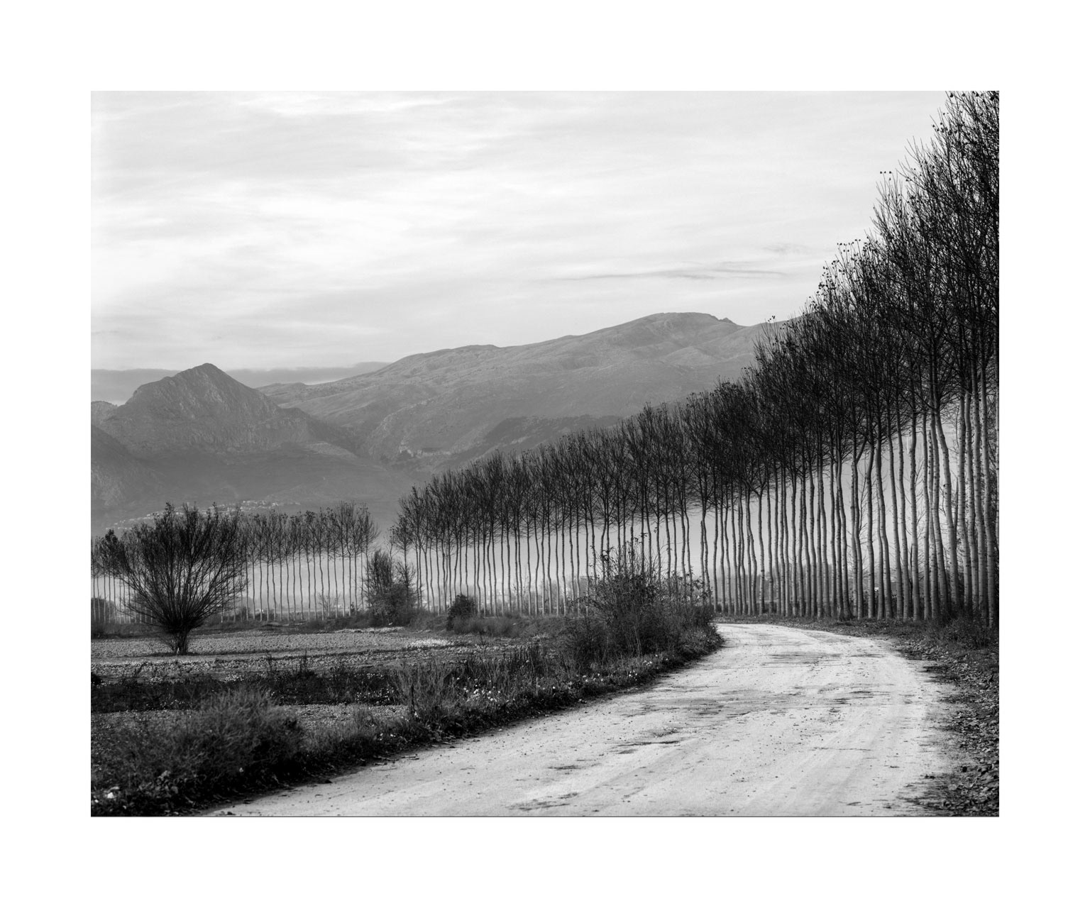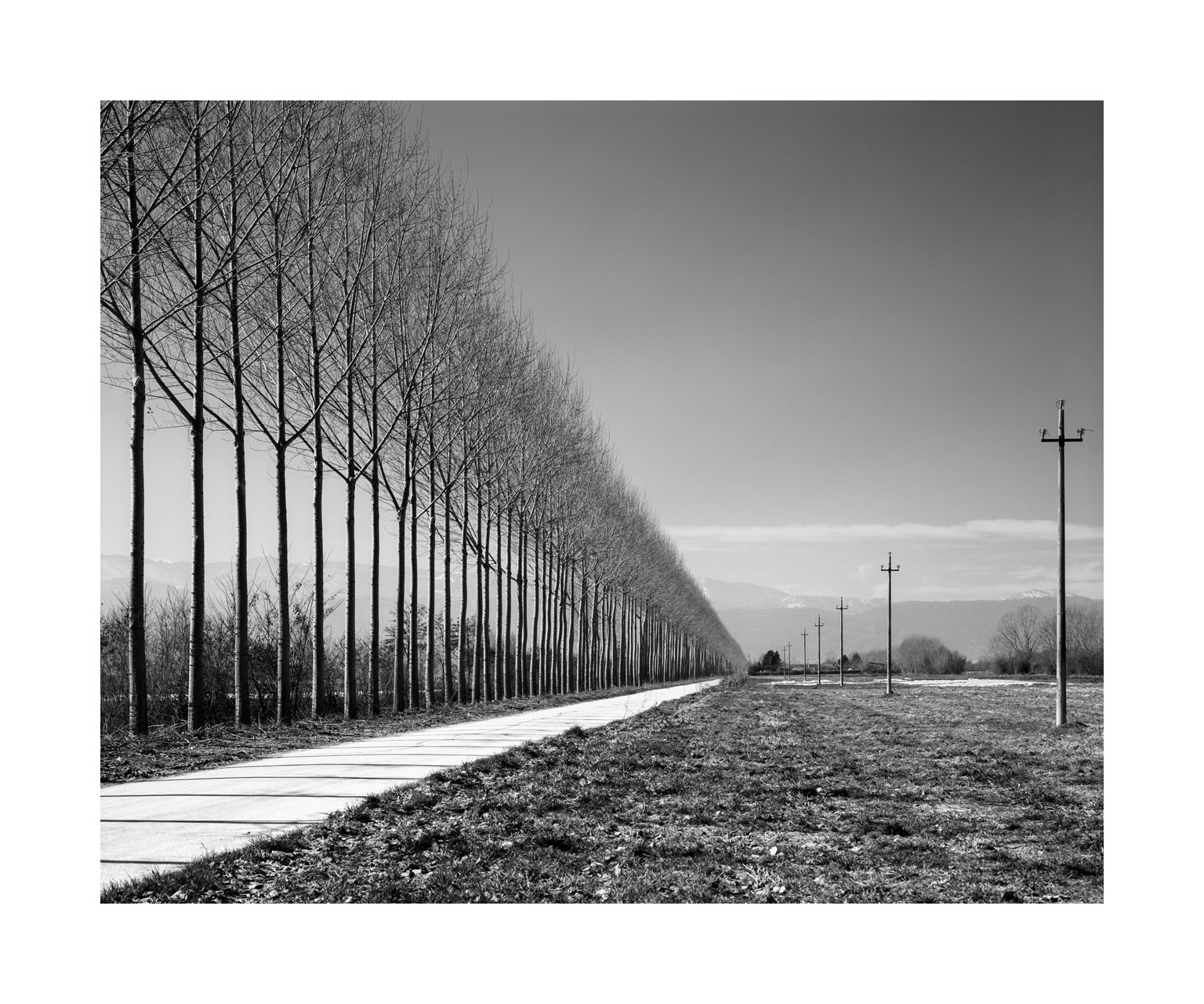 Fucino lake, the third lake in Italy by extension, was partially dried up in Roman times, through a colossal hydraulic work known as Emissary of Claudius or Claudio Cunicoli, whose well-preserved ruins are a tourist attraction. Then the emissary was obstructed and Fucino Lake reconquered his space. Nestled in the mountains, it gave a mild climate to the whole area of Marsica and was a magnificent landscape, so much so that it became a fixed stop for northern European travelers who between the 18th and 18th made the Grand Tour in Italy; there remains testimonies of so much beauty in the numerous paintings and stories made at the time, by these cultured travelers. In the mid-nineteenth century Prince Torlonia made a new emissary and in 1871 the last drop of water of the lake merged into the Liri river, forever changing the climate, the landscape and the way of life of the Marsicans. At the time the new arable land brought economic well-being, but seen with the eyes and sensitivity of today, the drying up was an authentic crime against nature. In the immense plain of Fucino I look for residues of the aesthetic dignity that the place had in the past, finding traces in the hypnotic geometries of the cultivated fields.